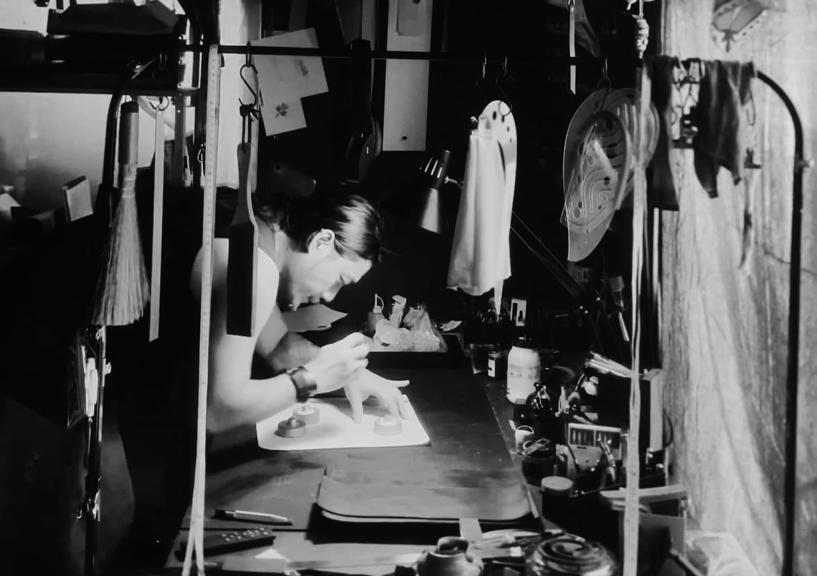 対極的な素材を荒々しくMixing したクラシックデザイン 洗い加工を施し全体に皺をいれております インナーレザーに子羊の毛付き革を使用し 金具付きのフラップには程よいアクセントとクラシックな印象を演出するデザインを採用 金具/リングはBase model同様焼入れ加工を施した仕様となっております Stormy Classicsは荒々しい表現をテーマにお仕立てしています 付属のリングは独自の焼き入れ加工と強めの腐食を入れて、刻印を刻みました コンパクトながらも高級革の持つ確かな存在感を職人のオールハンドでお仕立てすることにより、お手にされたお客様だけの鞄として日常の装いをワンランク引き上げます * Base model : Croshett * Leather : GUIDI / Horse Butt * Inner Leather : Sheep’s Unborn Calf (毛付き革) * Thread : Indian Sinew * Item Size : 210*170*65 * Color : All Blacks